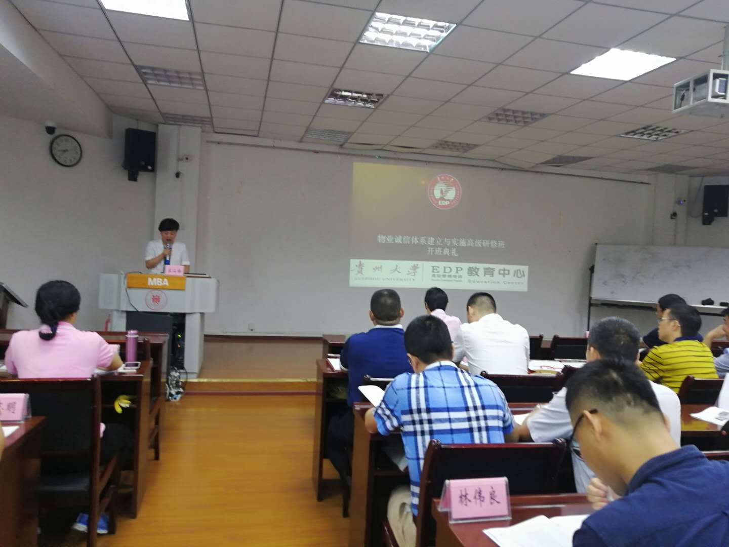 深入贯彻党的十九大精神,进一步提升深圳住建局领导干部物业管理能力,由贵州大学管理学院高级管理培训(EDP)中心承办的“贵州大学--物业诚信体系建立与实施高级研修班”于2019年6月9日至15日在贵州大学花溪校区举行为期一周的培训课程。