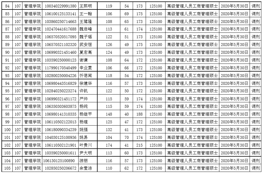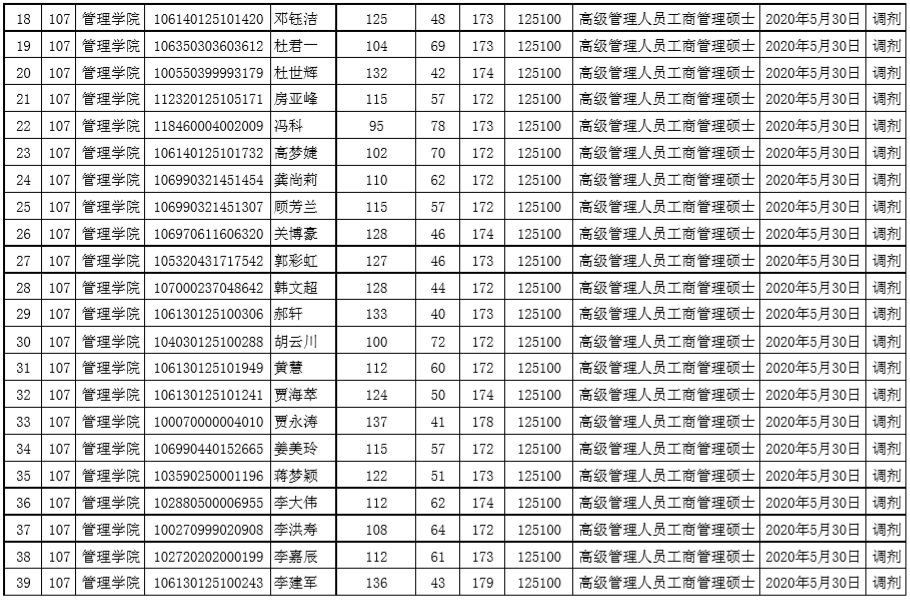 贵州大学2020年管理学院EMBA硕士研究生调剂复试名单