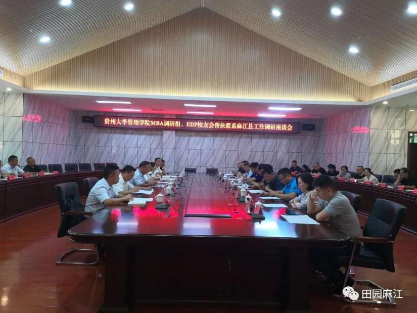 829日,在贵州大学管理学院副院长周莉莉教授、贵州大学EDP教育中心主任张勇教授和管理学院MBA教育中心常务副主任何跃勇老师等人的带领下,由管理学院专家组成员、贵州大学EDP教育中心联盟校友会、贵州大学管理学院MBA调研组等50余人组成的帮扶麻江县工作组,莅临麻江县开展帮扶工作调研。