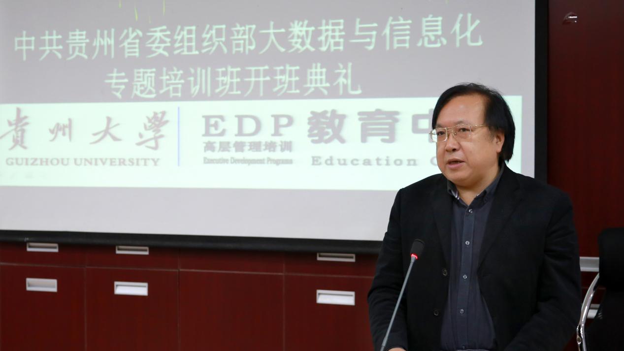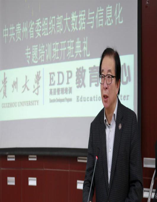 11月2日上午,由贵州大学EDP教育中心承办的中共贵州省委组织部大数据与信息化专题培训班开班典礼在我中心管理学院101教室举行。校党委书记李建军出席典礼,管理学院党委书记王秀峰主持典礼。