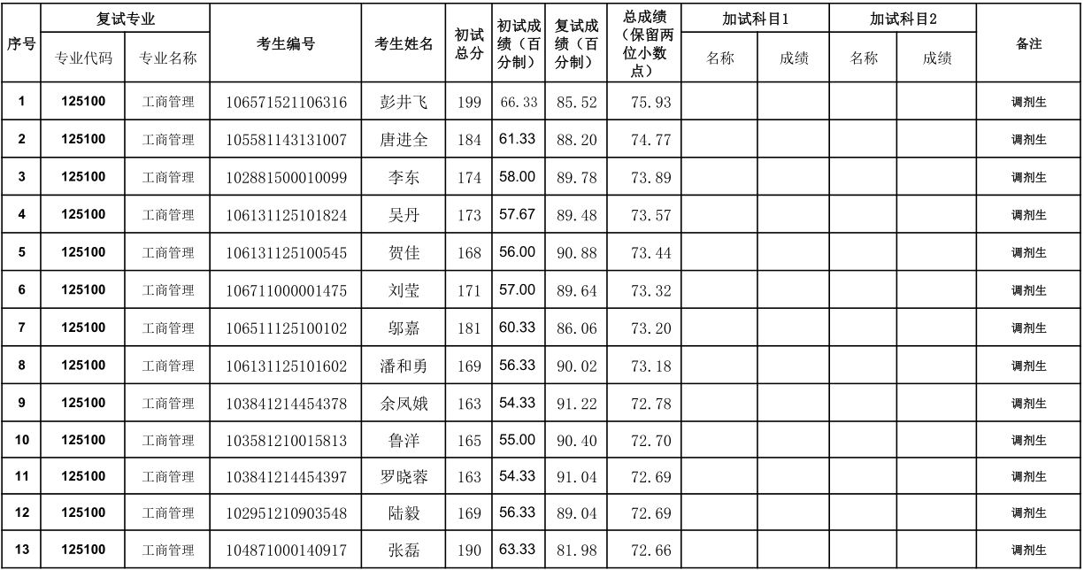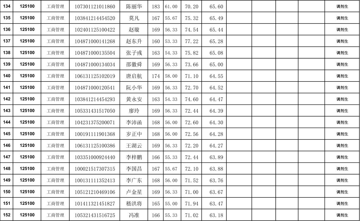 贵州大学 2021年管理学院 EMBA 硕士研究生调剂复试结果公示