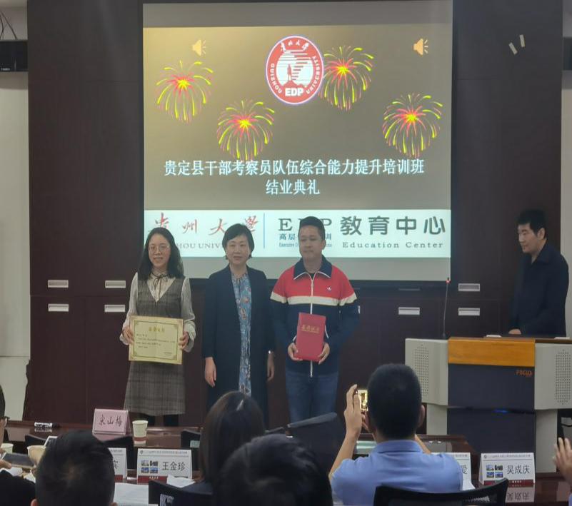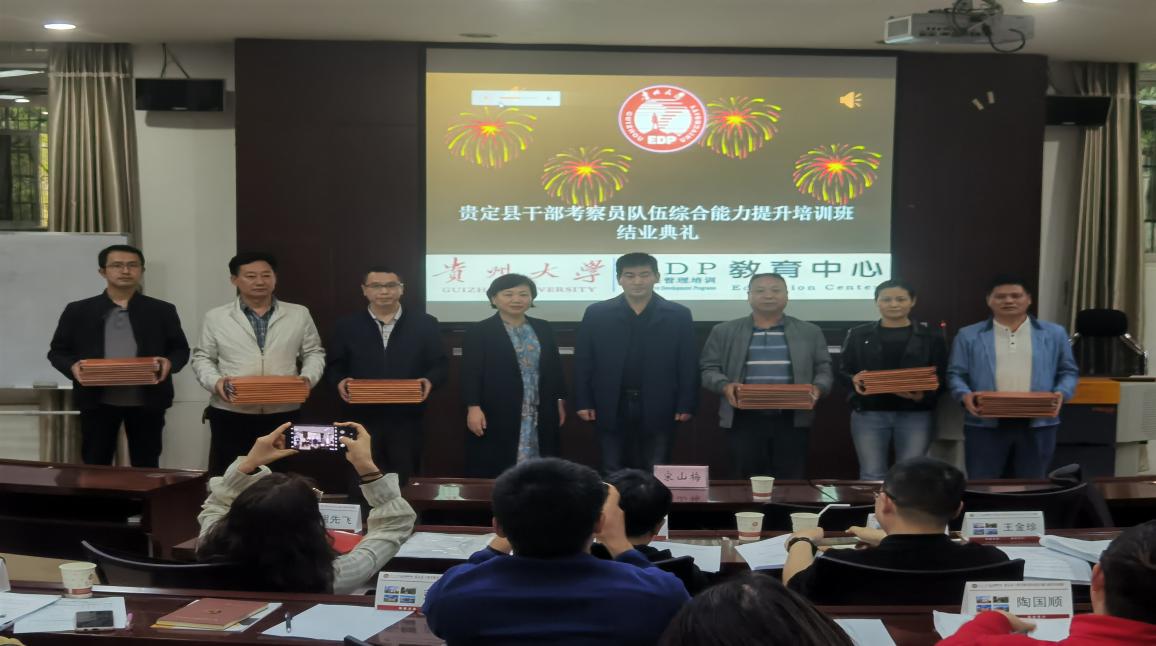 4月2日下午,举行了《贵定县干部考察队伍综合能力提升培训班》结业典礼,贵州大学管理学院副院长宋山梅教授和EDP教育中心主任张勇教授出席了结业典礼。