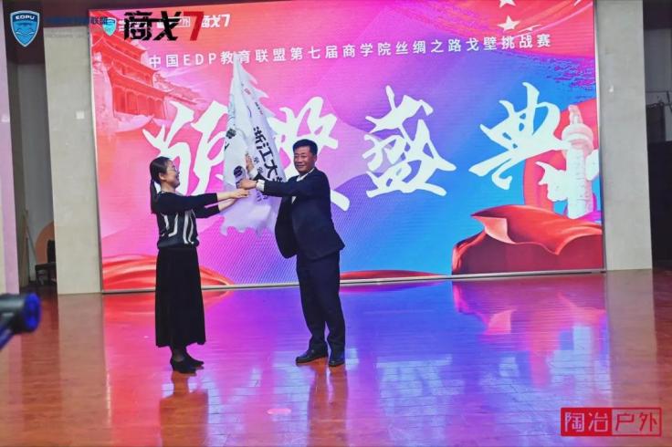 授旗:中国EDP 教育联盟副主席、商戈7 赛事轮值主席、四川大学商学院党委副书记张黎明教授