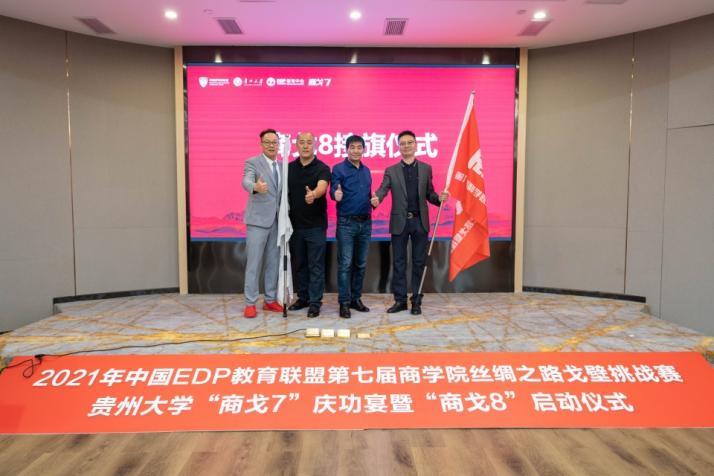 最后,在全体成员的见证下,“商戈8”启动仪式由中国EDP联盟副主席、贵州大学EDP教育中心主任张勇为代表开启,“商戈7”队员何波作为“商戈8”贵州大学战队主席接旗。