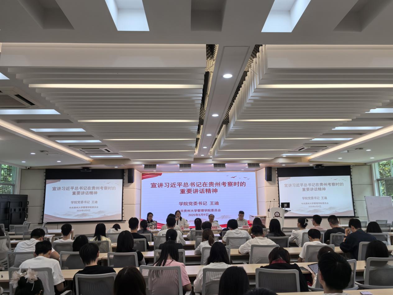 学院党委委员刘遗志传达学习《省委书记徐麟在贵州大学宣讲调研》,徐麟书记指出,新时代以来,贵州各项事业大踏步前进,全省加快高质量发展,为青年建功立业提供了广阔的舞台。他勉励大家永葆感恩之心,珍惜青春年华,全方位提升能力。