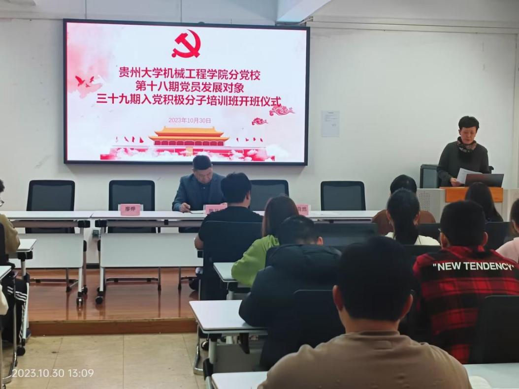 机械工程网站讯(记者 李艾龙|摄影 黄皓睿)2023年10月30日,机械工程学院分党校在机械楼327会议室召开第十八期党员发展对象、三十九期入党积极分子培训班开班仪式。学院党委书记滕召华、正处级组织员董蔚然、党委副书记廖烨出席会议,第十八期党员发展对象、三十九期入党积极分子参加会议,会议由学生科赵丽芳老师主持。