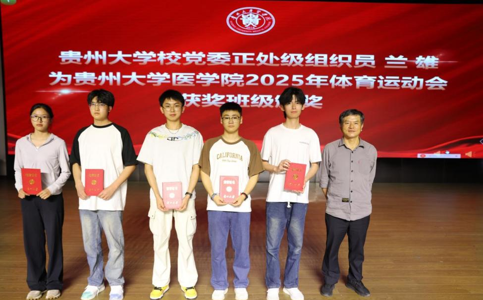 接下来,典礼隆重表彰了2023-2024学年中表现优异的医学院学子。贵州大学人民医院副院长吴强为省级、校级优秀毕业生颁奖,勉励他们将荣誉化作动力,在未来续写“贵大人”的精彩答卷;贵州大学医学院副院长曹颖为省级、校级“三好学生”“优秀学生干部”及“国家奖学金”获得者颁奖,赞扬其日夜兼程的奋斗精神,号召全体同学以他们为榜样,在未来的医学道路上不断践行“健康所系,性命相托”的誓言;贵州大学校党委正处级组织员兰雄为医学院体育运动会获奖班级颁奖,强调强健体魄是医者基石,期冀学子将赛场拼搏精神延续至医学事业。