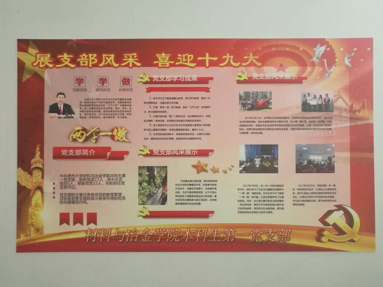 活动举办前,学院党委就展示的主要内容进行了安排,提出了相关要求。各党支部分别设计、制作出板报以展示本支部的基本情况、学习情况、开展活动,主要包括了“学党章党规,学系列讲话,做合格党员”的主要内容,以及在党支部的带领下,各教研室、各班级取得的主要成果。