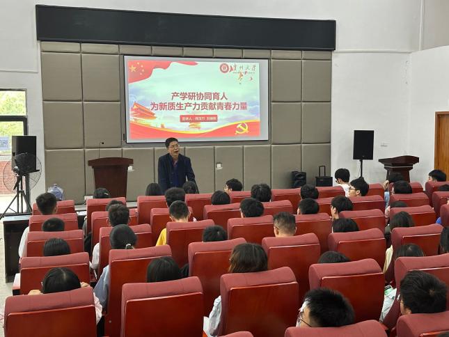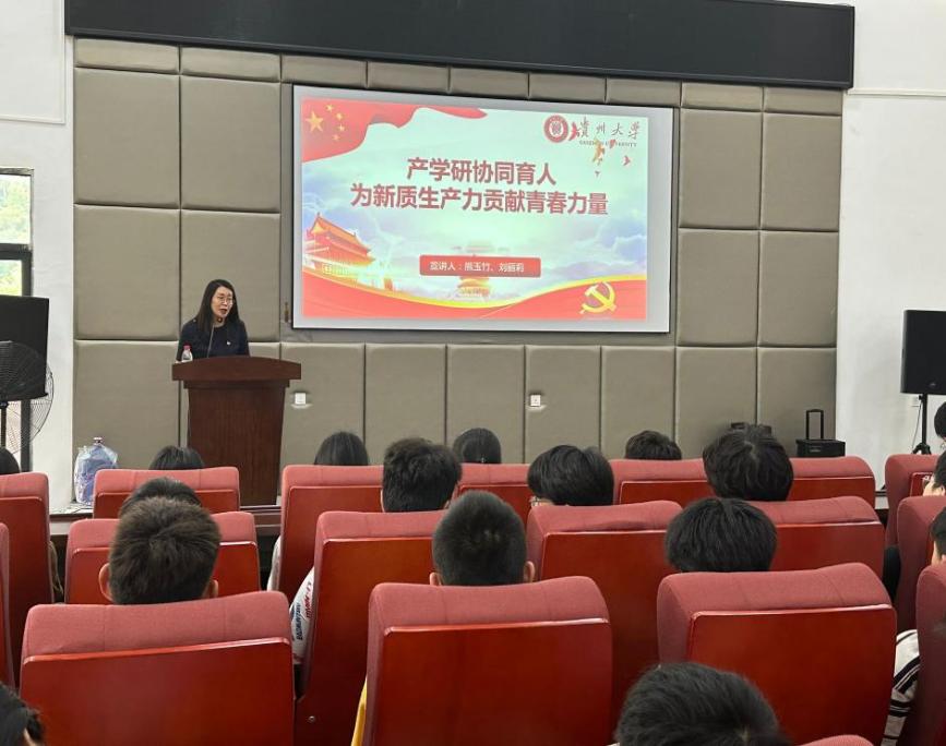 首先,熊玉竹教授向同学们讲解了“新质生产力的时代内涵”“产学研协同育人与新质生产力的内在联系”“作为一名贵州大学材料专业学生,怎样更好地参与新质生产力”等内容。她谈到,作为材料领域的研究者,很荣幸能够参与到新质生产力的建设中,鼓励同学们学好自己的专业知识,为国家新质生产力发展贡献青春力量。