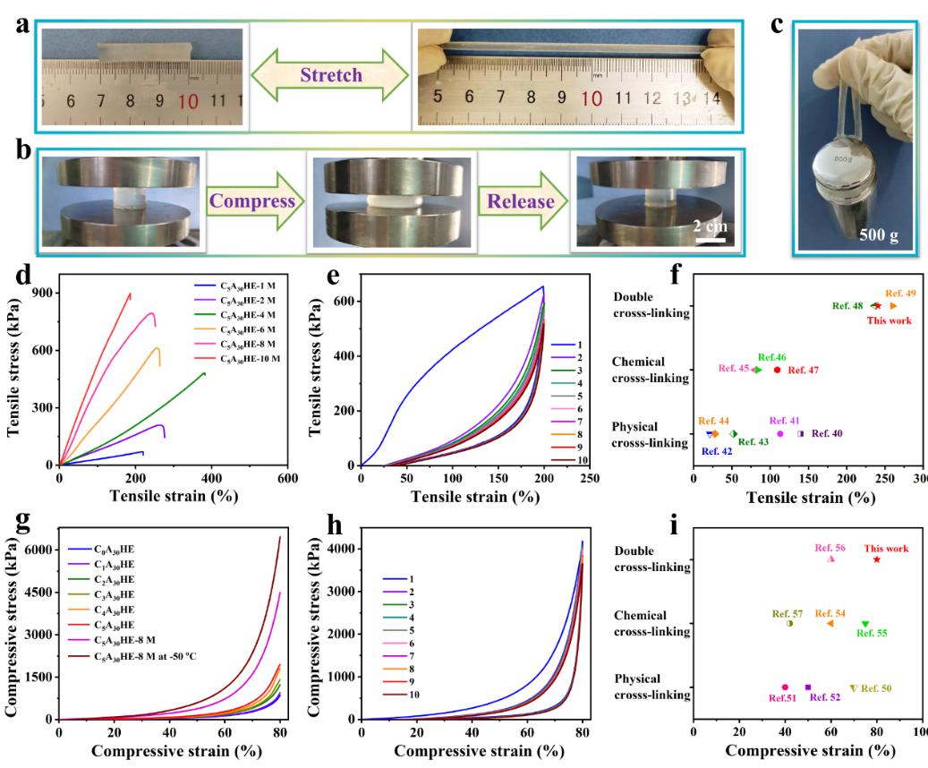 图2 CS-PAPILs/PAM/LiCl DN水凝胶的力学性能