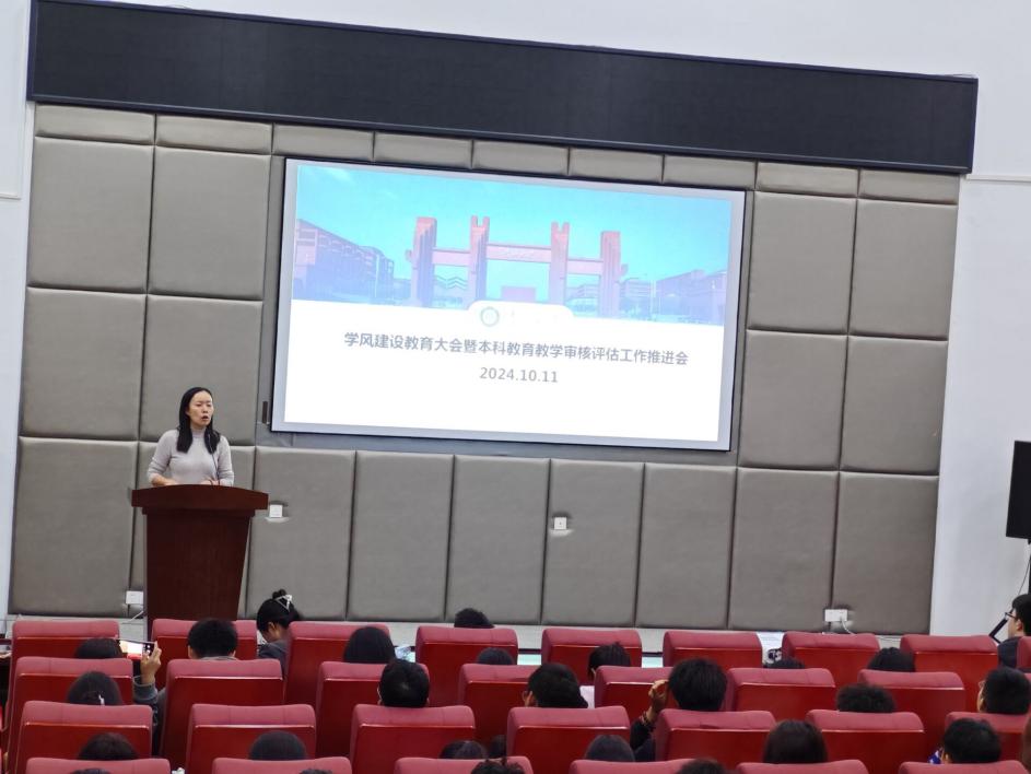 优良的学风是提高教育教学质量、促进学生成长成才的基本保证。为全面落实学校要求,积极推进本科教育教学审核评估工作,加强优良学风建设,提高人才培养质量,贵州大学材料与冶金学院于10月11日19:00在学院报告厅举行了学风建设教育大会暨本科教育教学审核评估工作推进会。参会人员为2024级班主任及材料类全体本科生。本次会议由材料与冶金学院辅导员李云老师主持。