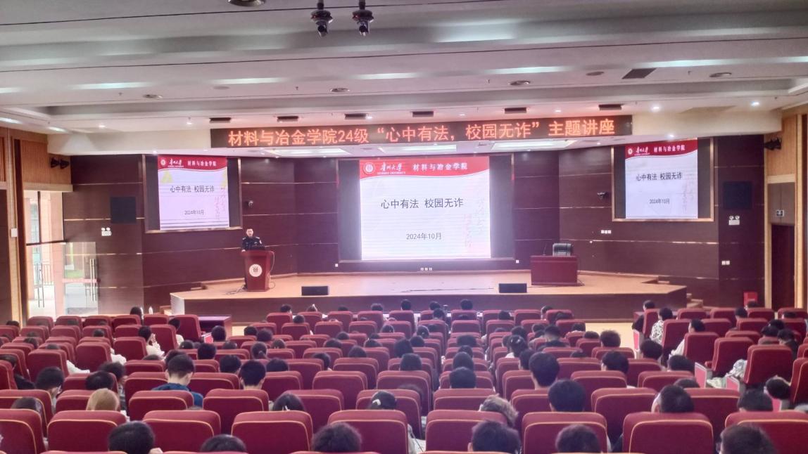 近年来,不法分子将诈骗犯罪的魔掌伸向社会阅历浅,防骗意识偏弱的学生群体,导致涉事未深的大学生屡屡有中招。为了进一步提升学生们的防范意识,贵州大学材料与冶金学院于2024年10月21日中午13:00在校贤正楼107报告厅,邀请了松山派出所民警赵普林开展了反诈知识宣传讲座。