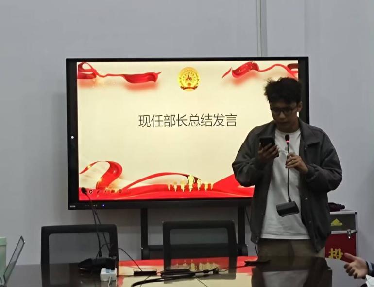随后由上一任团副做工作总结。部长依次就部门工作进行总结发言。新一届部长依次表达了各自对工作的思考和建议,最后由现任团副总结发言。全体人员合影留念。