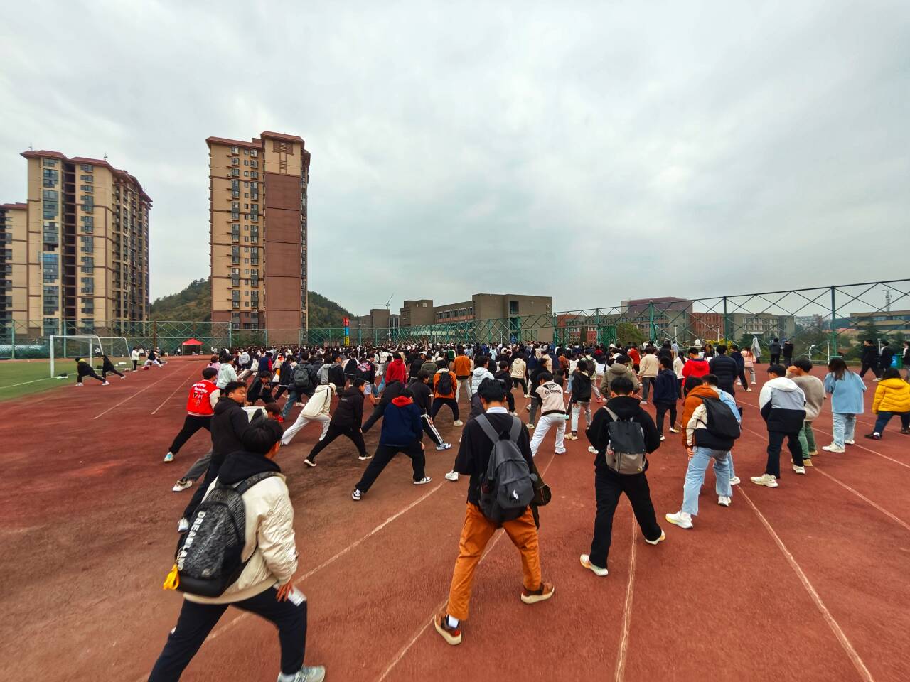 随后,开展热身运动。热身完毕,刘剑书记、熊玉竹正处级组织员、王丽远副书记带领同学们一起跑步,全体师生在良好的运动氛围中尽情挥洒汗水。
