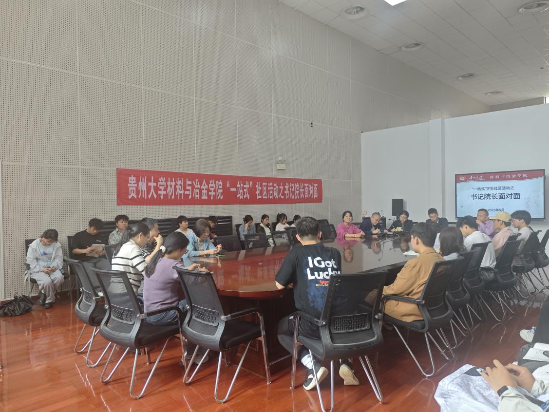 为进一步倾听学生心声,解决学生实际问题,搭建师生沟通交流的良好平台,2025年5月15日中午12:30,贵州大学材料与冶金学院在学院二楼会议室成功举办 “书记院长面对面” 座谈会。学院党委书记刘剑、院长刘其斌、党委副书记王丽远、副院长陈朝轶、学生科全体老师以及各班班长、学习委员齐聚一堂,共话成长与发展。