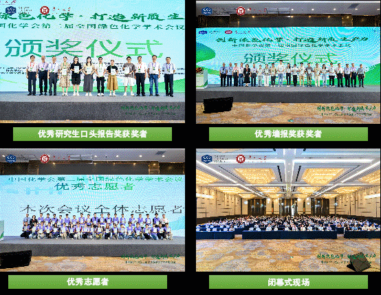 闭幕式由中国科学院化学研究所刘志敏研究员主持。贵州大学谢海波教授代表组委会对本届会议的学术成果、组织情况及产学研成效进行了全面总结。会议期间,一批优秀的青年科研人才脱颖而出。经专家严格评审,共评选出“优秀研究生口头报告奖”6项、“优秀墙报奖”11项。同时,会议志愿者团队因全程出色的会务服务获得组委会特别致谢。