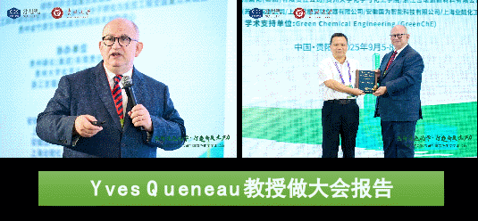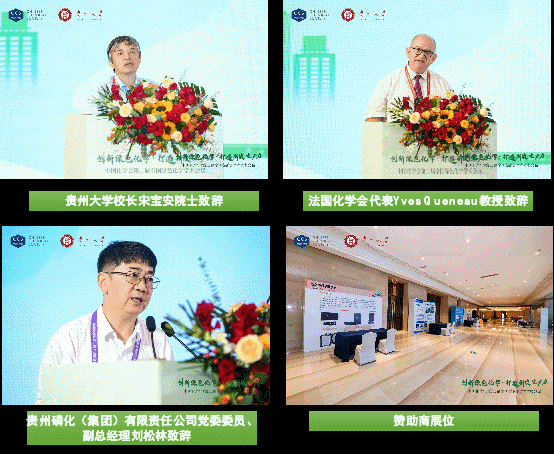 开幕式期间,中国工程院院士、贵州大学党委副书记、校长宋宝安教授,法国化学会代表Yves Queneau教授,贵州磷化(集团)有限责任公司党委委员、副总经理刘松林也分别为大会致辞,对与会嘉宾表示热烈欢迎,并高度肯定了本次会议在推动绿色化学学科发展和产学研融合方面的重要意义。宋宝安院士特别提到,贵州大学作为扎根贵州、服务全国的地方高水平大学,始终将绿色化学研究与区域发展需求紧密结合,在磷化工绿色转型、喀斯特生态修复材料、生物质资源高效利用等领域深耕多年,形成了一批具有鲜明特色的科研成果。先后组建了绿色化工与清洁能源重点实验室、贵州省喀斯特环境生态工程研究中心、贵州省竹质生物质高效利用技术创新中心等科研平台,与省内多家企业共建产学研合作基地,推动绿色化学技术从实验室走向生产一线,为贵州新型工业化建设和生态文明建设贡献了高校力量。此次能共同主办本次盛会,既是对学校绿色化学学科建设的肯定,更是我们向各位专家学习、深化交流合作的宝贵机会。同时,也真诚邀请各位专家学者常来贵州大学指导工作,为学校学科建设和人才培养建言献策,助力我们培养更多懂绿色技术、能服务产业的优秀人才。