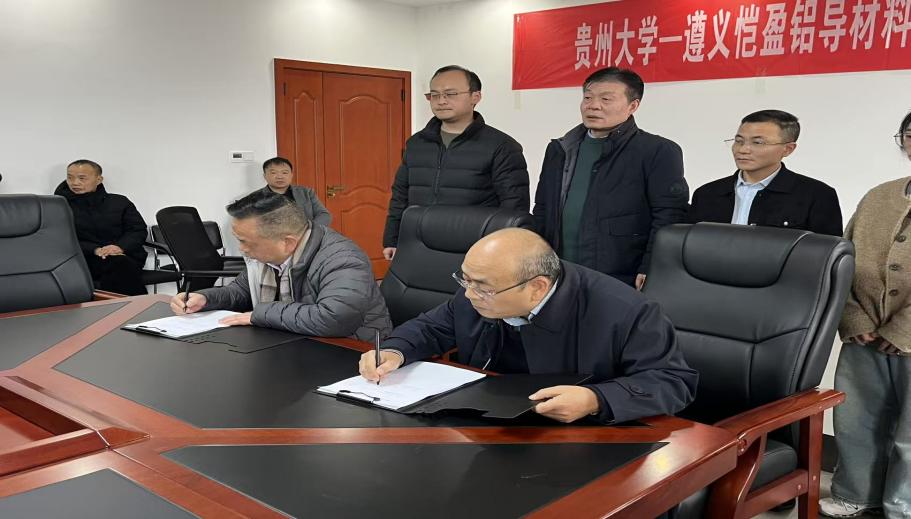 2026年2月2日,贵州大学材料与冶金学院刘其斌教授团队与遵义恺盈铝业有限公司正式签署全面战略合作协议。签约后,刘其斌教授与王意恒董事长共同为“贵州大学-遵义恺盈铝导材料联合研发中心”揭牌,标志着校企合作迈入平台化、机制化、长期化的新阶段。