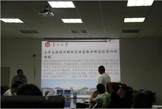 2017年6月24日19:00,贵州大学矿业学院“安全生产月”教育系列活动—主题座谈会在矿业学院南楼305会议室举办。主题座谈会邀请了贵州大学研究生委员会委员、法学院研究生会主席孙其琛为大家讲解法律知识,会议由矿业学院研究生会主席郭鹏飞主持,矿业学院研究生、本科生参加了此次座谈会。