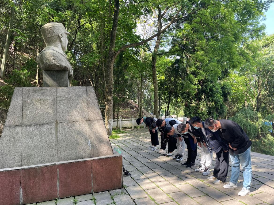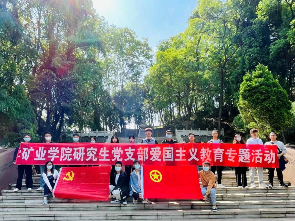矿业学院研究生第二党支部书记黄港带领大家参观了坐落于花溪公园内的爱国将领戴安澜将军墓。在革命烈士碑前,党员及团员青年们庄严肃立,向革命先烈敬献鲜花、默哀致敬,缅怀革命先烈。