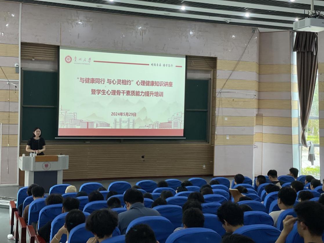 为普及心理健康知识,增强学生心理骨干素质能力,2024年5月29日,贵州大学心理健康教育咨询中心赵小青老师在西楼117报告厅开展“与健康同行 与心灵相约”心理健康知识讲座暨学生心理骨干素质能力提升培训,矿业学院、材料与冶金学院、资源与环境工程学院的健康委员、寝室长等100余名学生代表参加。