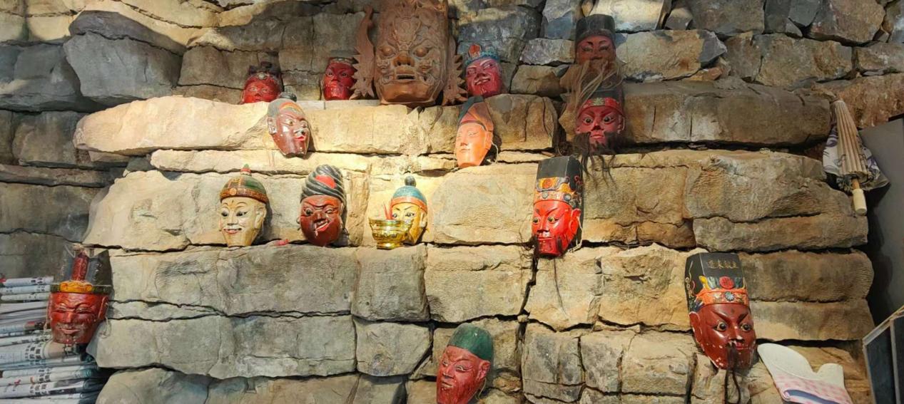 在夜郎谷非遗文化基地,团队参观了傩戏文化传人居住地,并与秦氏傩坛第三十三代传人秦法雷进行了深入交流。秦法雷向团队介绍了傩戏的历史演变及其在黔地的传承脉络。傩戏起源于商周时期的方相氏驱傩活动,汉代以后逐渐发展为具有娱人色彩的礼仪祀典,至宋代前后,傩仪受到民间歌舞、戏剧的影响,演变为以酬神还愿为目的的傩戏。秦氏傩坛自明代洪武年间扎根黔地,至今已传承三十三代,保留了百余套傩面具及相关古籍。