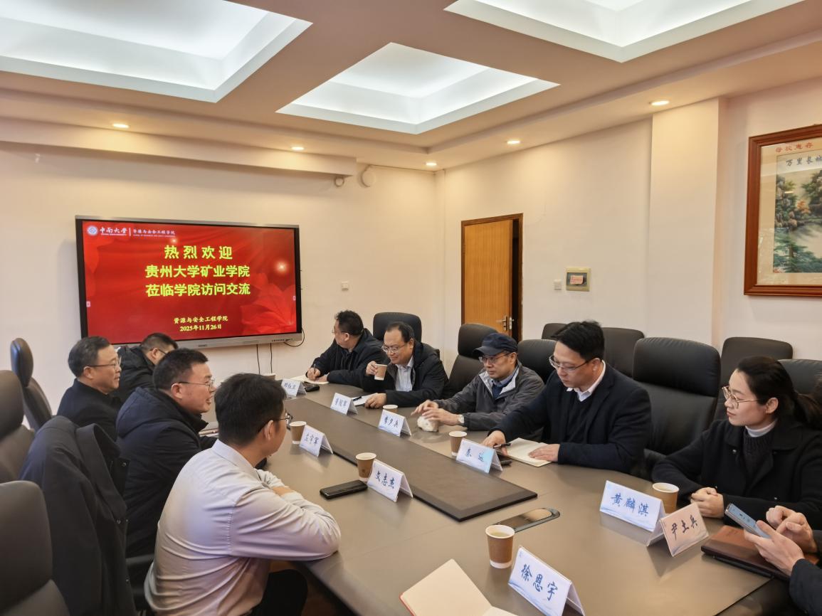 11月25日,贵州大学矿业学院党委书记凃华君、院长左宇军、副院长文志杰等一行赴中南大学资源与安全工程学院,就2025年中南大学“组团式”帮扶贵州大学矿业工程学科工作进行深入交流。中国工程院院士李夕兵教授,中南大学资源与安全工程学院党委书记秦进、副院长邓红卫、尹土兵、李地元及帮扶团队代表董陇军、黄麟淇、彭康参加会议。
