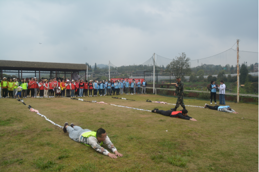 接下来,团队间的比拼正式拉开帷幕。第一项活动是“后方支援”:根据教官发出的指令把对应的物品摆放在指定区域内,最快达到终点的团队获胜。在活动过程中,成员们全力以赴,衣服、鞋子、袜子、矿泉水瓶、树枝等物品纷纷上阵,甚至是真人上场,大家在一片欢笑声中凝心聚力。