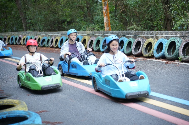 团队协作项目结束后,迎来了同学们最感兴趣的项目——无动力滑板车。在教练组和中心老师的带领下,同学们坐上缆车,到达滑板车项目的起点。经过严格细致的安全培训,同学们佩戴好护具,从滑道上逐一滑下,感受着风驰电掣的速度,欣赏着一路秋黄的美景,3.8公里的距离转瞬即逝,同学们意犹未尽,纷纷感叹不虚此行。