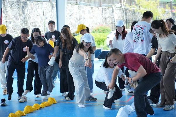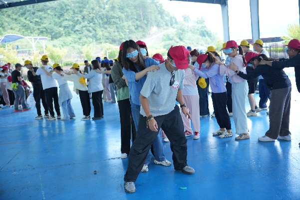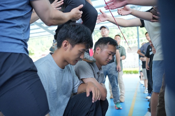 一项项充满挑战性、协作性的项目在紧张活泼又充满期待的氛围中开启了,同学们手搭着肩膀组成一列列蒙眼的“贪吃蛇”,在最后一个“眼睛”的指挥下,静静地开启了小队的寻物竞争,每条“蛇”之间的不时出现环绕和碰撞,让画面变得生动有趣,却也不乏竞争;“支援前线”项目更是调动了同学们的热情,各队争分夺秒、分工配合,队员们纷纷贡献出自己的随身物品,在队友的加油呐喊声中不断接近终点,同学们协同拼搏、奋勇争先,将团队合作的精神体现得淋漓尽致。
