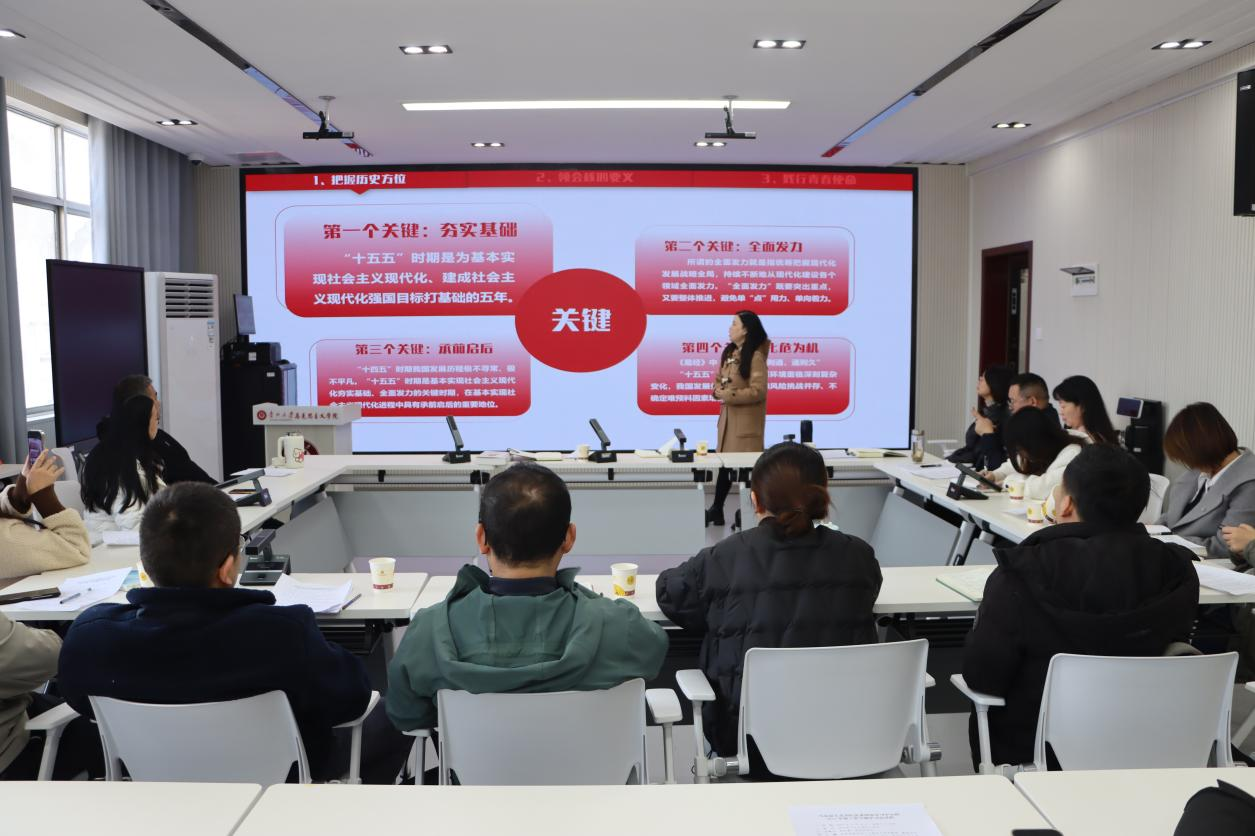首先,蒋红霞领学《习近平谈治国理政》第五卷、习近平总书记在海南、广东考察时的重要讲话精神,指出要将发展融入到国家战略全局,为学生提供更贴合实际的实践平台,将育人工作与地方发展相衔接。