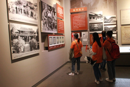 在纪念馆里,大家被一幅幅令人肃然起敬的照片和一件件生动鲜活的纪念品带入红色记忆里边。1935年1月15日至17日,中共中央政治局在贵州遵义召开了独立自主解决中国革命的一次极其重要的扩大会议。这次会议是中国共产党第一次独立自主地运用马克思列宁主义基本原理解决问题的路线、方针政策的会议。这次会议初步确定了以毛泽东为代表的马克思主义的正确路线在中共中央的领导地位,挽救了党、挽救了红军、挽救了中国革命,是中国共产党历史上一个生死攸关的转折点。大家在纪念馆里通过文字、图片、实物共同感受着革命先烈们以革命理想高于天的坚定信念和不畏艰难困苦的英雄气概为民族独立与解放、为人民自由与幸福浴血奋战、舍身忘死、鞠躬尽瘁的革命精神。