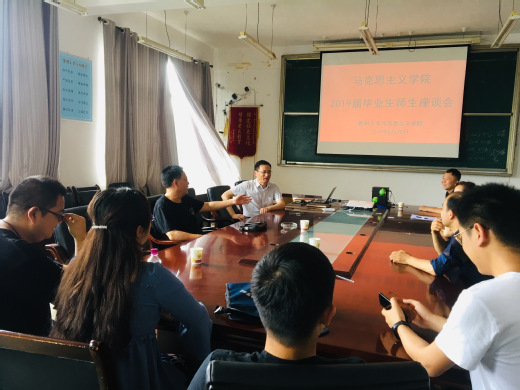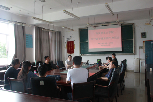 会议伊始,张国安教授总结了2019届毕业生总体的就业升学情况。33名学生中,其中考取博士研究生有3名,大部分学生选择就业。总体来说,我院学生就业情况良好。张院长就考博和就业这两个方面做了经验分享。对于考博的学生来说,他非常支持学生考博,以考博成功的学生为例激励学生努力学习、争取考博。考博贵在坚持,下定决心考博了就不要放弃,坚定信念一定会有收获。考上博士也只是第一步,要继续努力钻研学术,为祖国的发展做出更大的贡献。对于就业的同学,他认为马克思主义理论专业的发展前景好,祖国需要大量的人才。因此,学生要把握好机会,加强自身修养,最重要的是打铁还需自身硬,要做到夯实理论基础知识、练就过硬本领、培养扎实面试技能。