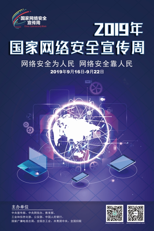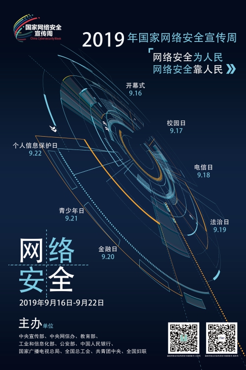 2019年国家网络安全宣传周时间为2019年9月16日至9日22日,其中,9月17日为网络安全教育校园日。