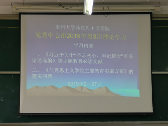 本次会议主要有两个内容:学习《习近平关于“不忘初心、牢记使命”重要论述选编》等主题教育必读文献;讨论《马克思主义学院主题教育实施方案》的落实问题