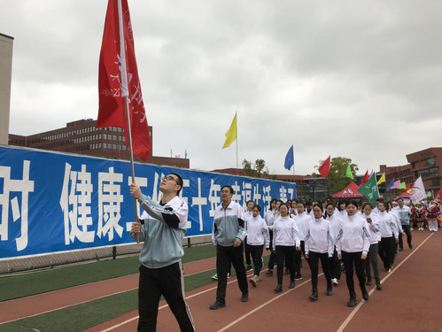 我院方队服装整齐、步伐统一、精神抖擞,经过主席台时获得阵阵掌声。