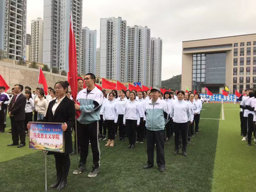 2019年11月13日上午校,贵州大学第十五届“体育节”开幕式在西校区体育馆举办。我院由党委书记杨仁厚,院长张国安护旗,研究生代表27人,教职工代表16人组成方队出席。