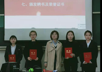 接下里,李玥老师分别为学院研究生团委及第十三届研究生会成员颁发聘书及荣誉证书并合影留念。