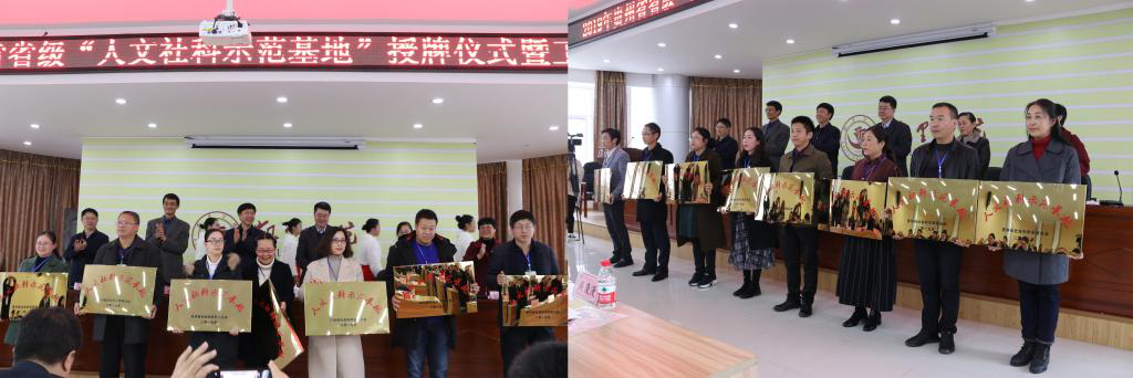 包御琨主席首先传达了党的十九届四中全会暨省委十二届六次全会精神。随后,贵州师范学院的贵州民族审美文化传播基地、遵义师范学院红色文化研究中心基地、贵州省图书馆基地、凯里学院原生态文化研究中心基地等基地负责人作了创建工作经验的发言。随后,刘宗严主席宣读了《省社科联关于2019年度省级“人文社科示范基地”命名授牌的决定》。16个单位批获2019年度省级“人文社科示范基地”称号并参与授牌仪式。四渡赤水纪念馆、贵州省中医药文化示范基地作为新授牌单位作了表态发言。