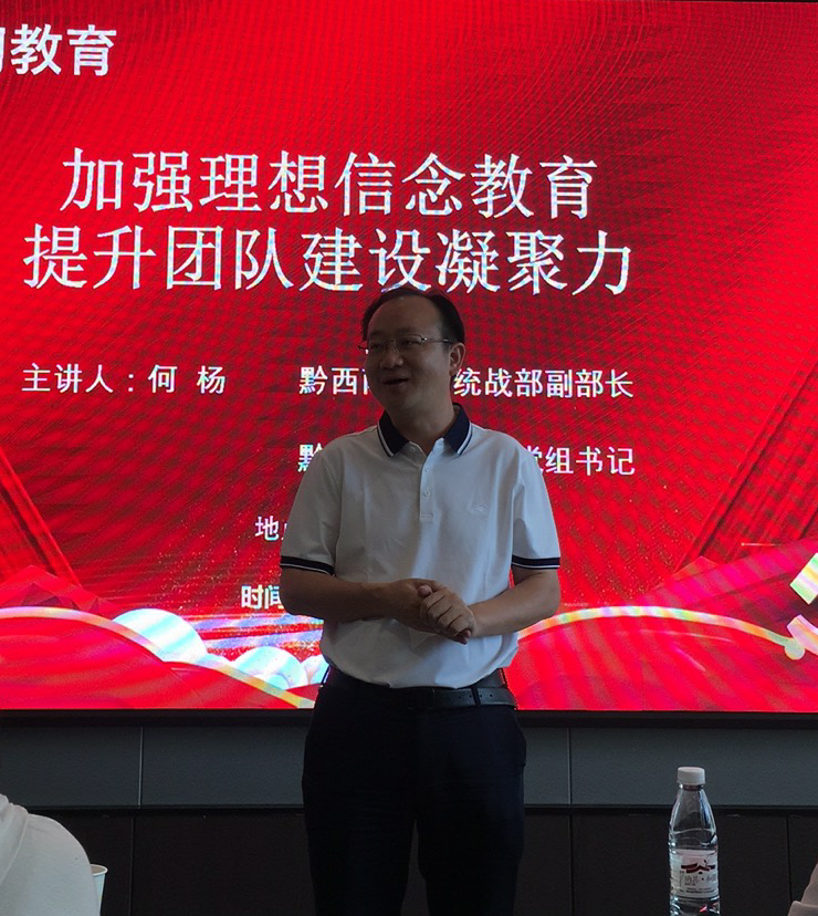 黔西南州委统战部副部长何杨给调研组上题为《加强理想信念教育,提升团队建设凝聚力》的党课