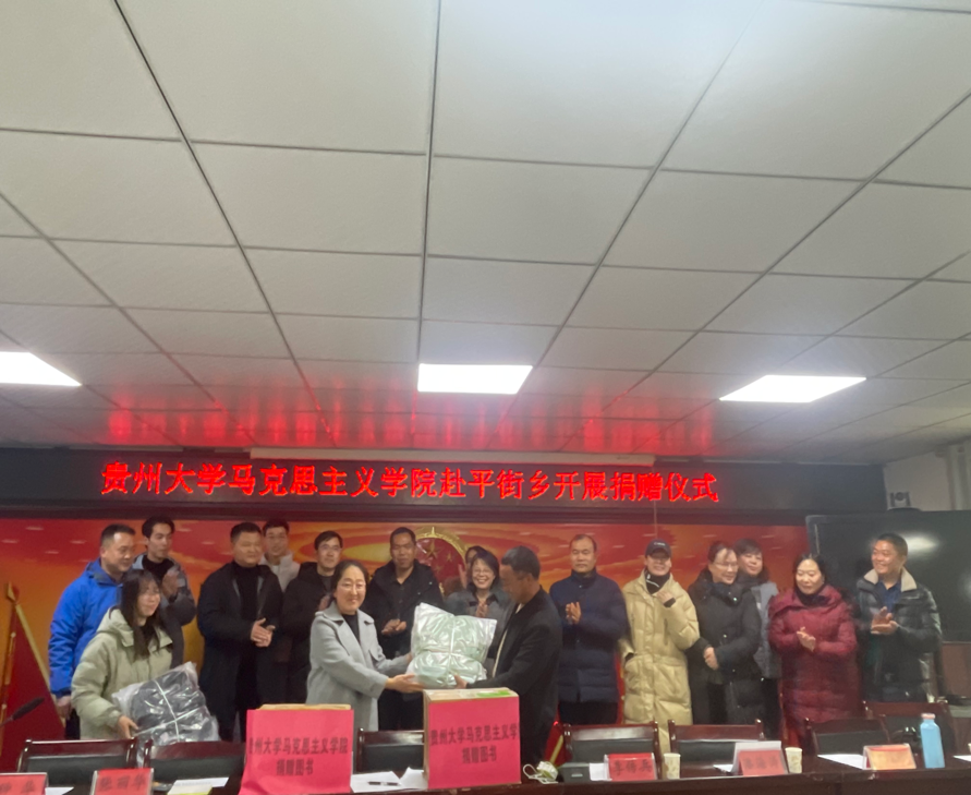 会后,张丽华副书记代表我院向平街乡花江村小学捐赠价值共计约15000元的文具和书籍(书包50个、图书477册)。同时,李传兵副院长与平街乡领导就共建“贵州大学马克思主义学院红色文化研习基地”举行了签约仪式。