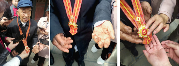 讲授中,老人家那粗糙、长满老茧厚实的手捧起珍贵的“七一勋章”给老师们观看,大家的敬佩之情无以言表,这枚勋章不仅是时代劳动楷模的象征,更是他为党为民无私奉献的精神写照。正如2018年感动中国十大人物中的颁奖词所写:“水过不去,拿命来铺,这是一个老党员为人民许下的誓言,大发渠,云中穿,大伙吃上了白米饭。三十六年,为梦想跋涉,僵直了手指,沧桑了面孔,但初心不变。”