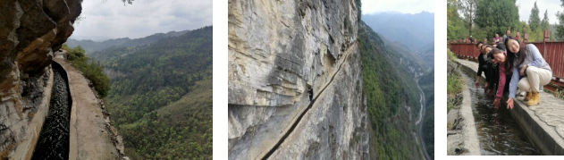 大家来到“大发渠”进行实地考察,在险峻的大山中,老师们看到了盘旋在大山悬崖绝壁上蜿蜒的水渠,清亮的泉水欢快地奔流,旁边就是万丈绝壁,走在边上,双腿发软!大家纷纷感叹:要克服多大的困难,才能修出这样的一条渠啊!南宋朱熹曾说:“问渠哪得清如许,为有源头活水来”,如今这“活水源头”就是“当代愚公”黄大发带领群众与天斗、与地斗,埋头苦干、百折不挠奋斗出来的!