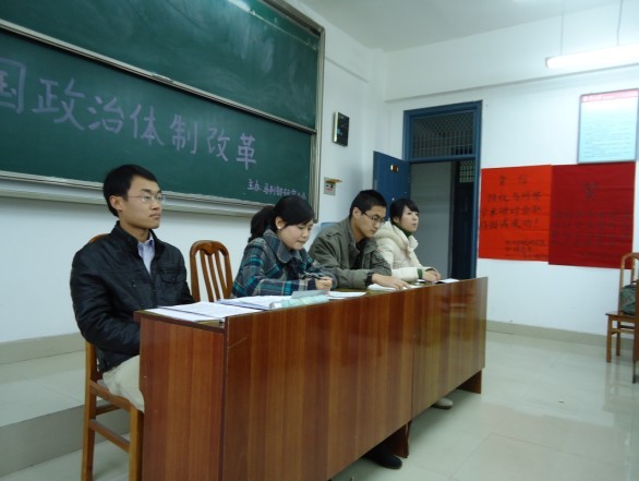 同学们听得非常认真,积极思考,并就以上三位同学所作的发言提了几个问题。大家就我国政治体制改革的紧迫性、连贯性,改革的重点和难点,政治腐败的根源等问题展开激烈讨论,大家各抒己见,踊跃发言。几位老师也就此谈了自己的几点看法,并对几位主题发言人做了点评。杜书记强调探讨这个问题必须站稳社会主义立场,把握好方向,抵制西方的政治宣传。杨仁厚教授从专业的角度,谈了政治体制改革的着力点,尤其强调选举制度改革的重要性。郑黔玉教授作了总结发言,认为本次论坛非常成功,希望研究生会形成制度,每学期至少搞两期,希望能成为广大研究生学习知识、拓展视野、锻炼能力的平台。