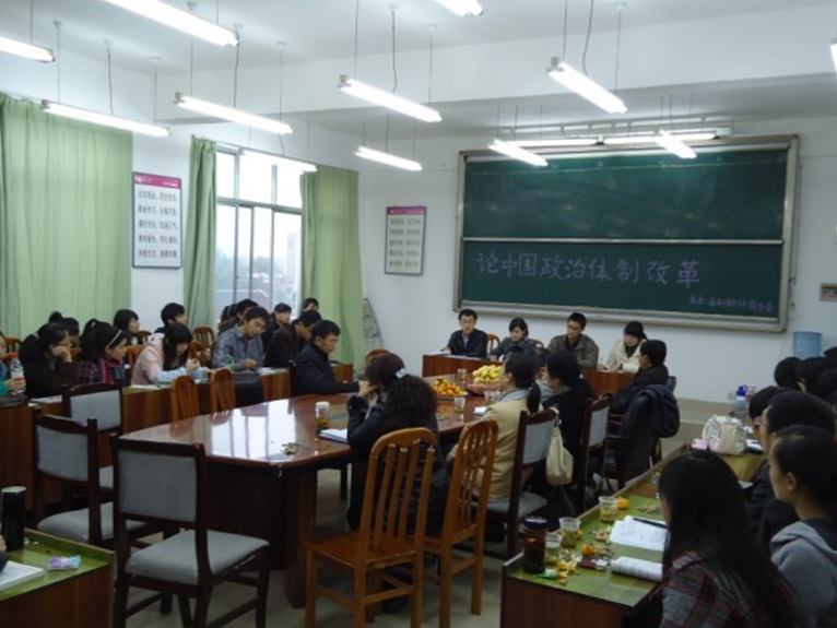 本次论坛由第五届研究生会主席李秋秋同学主持,论坛的主题是中国政治体制改革的若干问题。论坛分两个环节进行,首先是由薛风雷、李俊倩、卢刚君三名研究生代表就这一主题作主题发言,接下来是老师、同学们向三位发言的同学提问交流。
