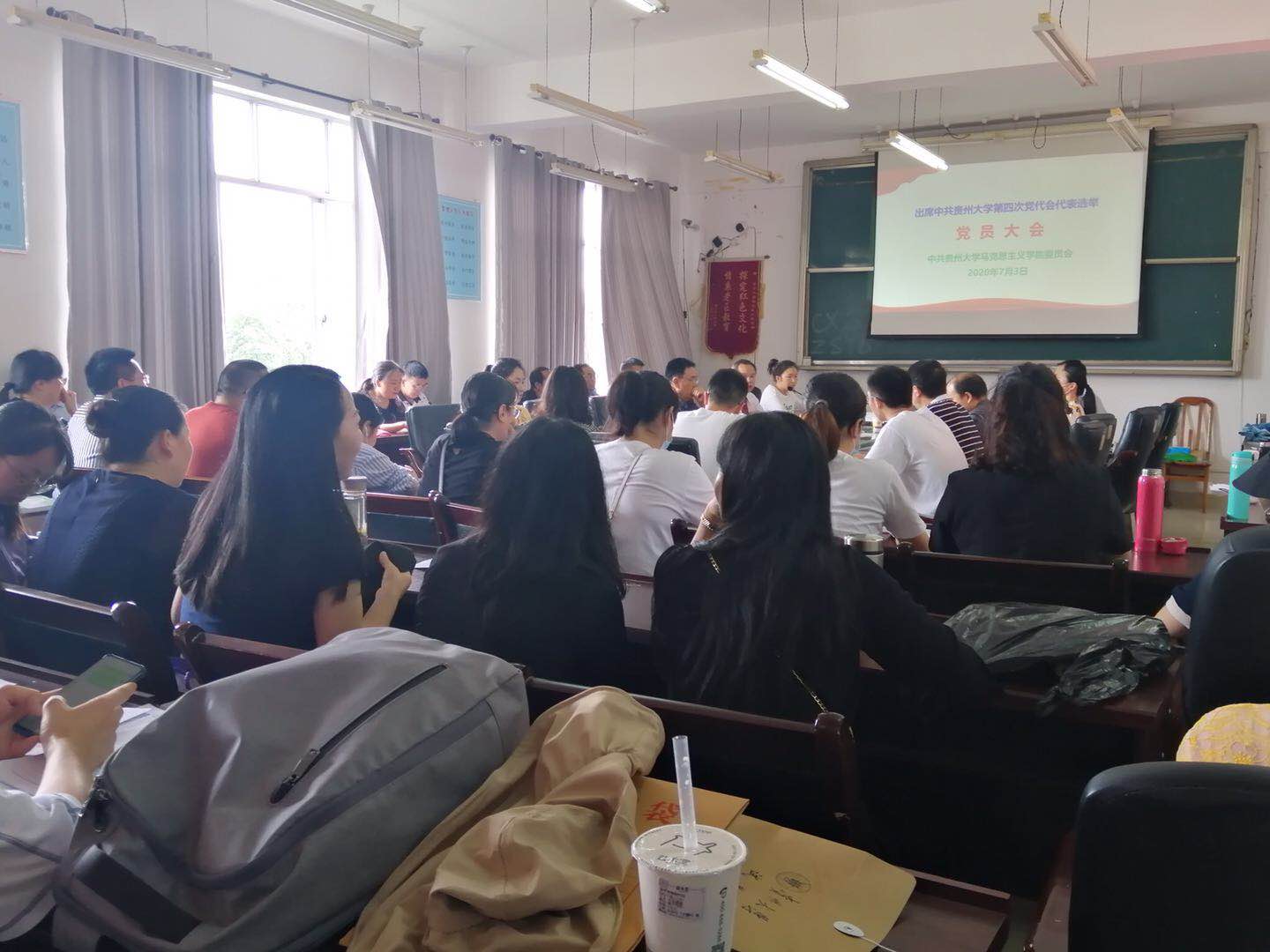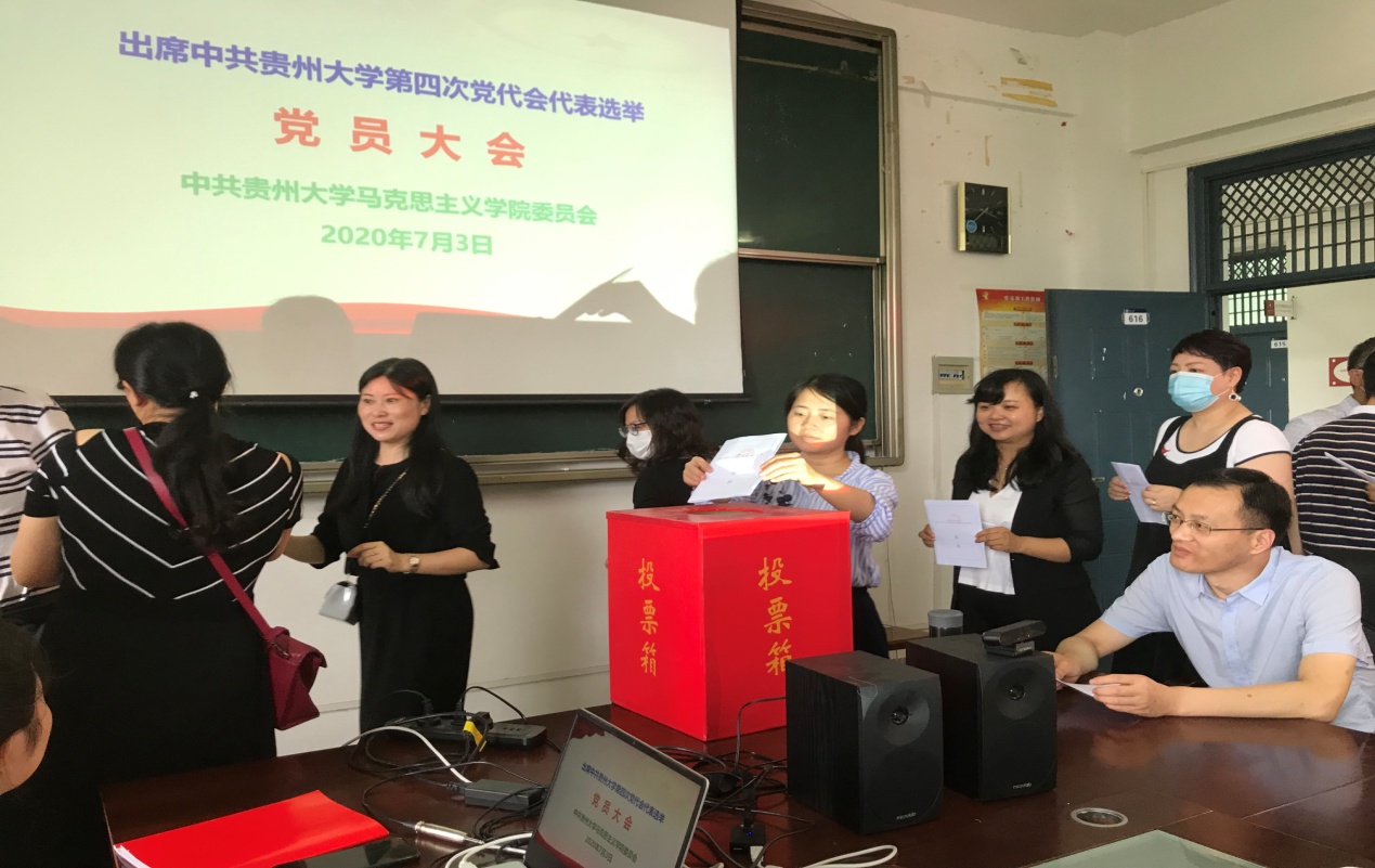 为积极配合中国共产党贵州大学委员会第四次代表大会的最终胜利召开,贵州大学马克思主义学院党委把围绕选举产生本院出席此次校党代会代表,作为当前我院的一项主要工作和重要政治任务循序推进,抓紧抓实。在前期专题会议部署的基础上,通过学院全体教职工及学生党员动员大会,经充分学习和领会中共贵州大学第四次党代会代表选举产生办法的相关指导精神和文件规定,并开展了一系列周密细致的筹备工作后,我院于2020年7月3日下午在马克思主义学院顺利召开了出席中国共产党贵州大学第四次代表大会马克思主义学院代表选举党员大会。
