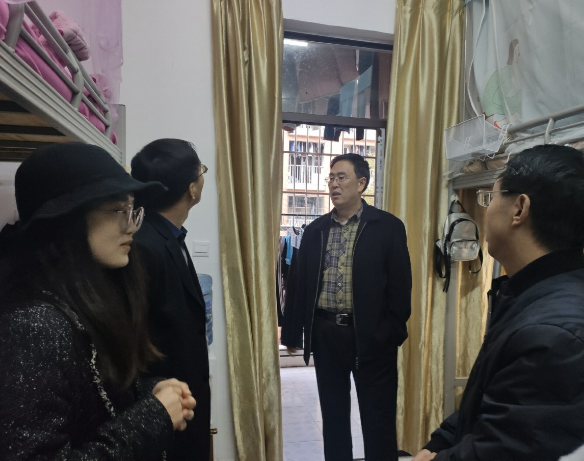 2020年11月6日周五下午四时五十分,马克思主义学院张国安院长、郭红军副院长、卢正涛副院长以及研究生科李玥老师为了解学生宿舍的用电安全情况,随机对研究生宿舍进行抽查。本次检查主要针对宿舍有无私拉乱接、使用大功率电器设备等违规现象。总体而言,情况较好,没有发现违规使用电器的情况。除了检查安全用电情况,学院领导还询问了学生有关学习、生活方面的问题,与同学们分享自己学生时期的趣事。通过专项检查,学院对学生安全用电情况有了进一步了解,提高了学生的安全意识,充分体现了学院对学生的关怀。
