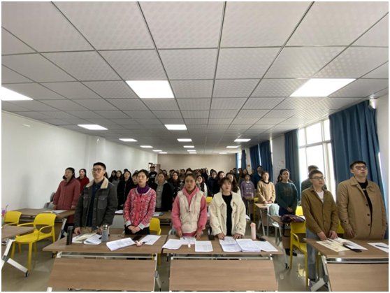 会议最后,主持人宣布全场起立,奏唱《国际歌》。贵州大学马克思主义学院研究生党支部接收新一批入党积极分子的会议在雄壮的《国际歌》的歌声中圆满闭幕。