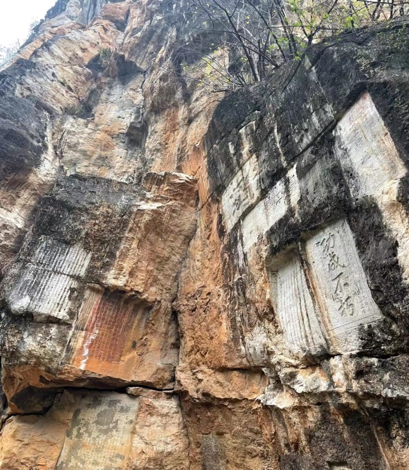 驻村书记刘玉高带领调研组参观小花江古寨及铁索桥摩崖石刻碑群