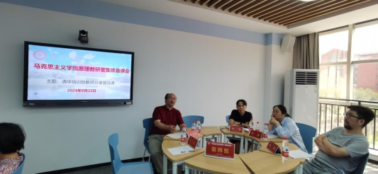 2024年8月22日下午14点,我院马克思主义基本原理教研室集体备课会在明俊楼204教室举行,会议主题围绕“清华培训班教师分享暨说课”展开,教研室主任范方红担任主持人。